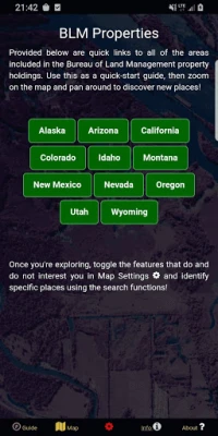 আমেরিকার বিশাল ভূখণ্ডের প্রাকৃতিক সৌন্দর্য ও ঐতিহাসিক স্থানগুলি অন্বেষণ করুন। এই অ্যাপটি আপনাকে পশ্চিম মার্কিন যুক্তরাষ্ট্রের লক্ষ লক্ষ একর পাবলিক BLM সম্পত্তিতে লুকিয়ে থাকা অপরূপ সৌন্দর্য এবং বিনোদনের সুযোগ খুঁজে পেতে সাহায্য করবে।