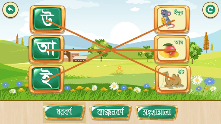 বর্ণমালা-এর মজাদার খেলার ভান্ডার শেখাকে আরও উপভোগ্য করে তোলে। "শূন্যস্থান পূরণ" এর মাধ্যমে শব্দের গঠন শিখুন, "অক্ষর মেলাও" এবং "অক্ষর দেখে মেলাও" এর মতো গেমগুলোর সাহায্যে অক্ষর ও ছবির মধ্যে সম্পর্ক স্থাপন করুন, অথবা "ছবি দেখে মেলাও" এর মাধ্যমে চিত্র দেখে সঠিক শব্দটি বেছে নিন। ছোটদের জন্য বিশেষভাবে ডিজাইন করা হয়েছে "চলো ফোন করি" নামের একটি আকর্ষণীয় ফিচার, যেখানে তারা ফোন খেলার ছলে বর্ণমালার সাথে পরিচিত হবে। চমৎকার অ্যানিমেশন ও বাংলা সাউন্ডে ভরা প্রতিটি খেলা শিশুদের মন জয় করবে এবং শেখাকে গেমিংয়ের অনবদ্য অভিজ্ঞতায় পরিণত করবে।
