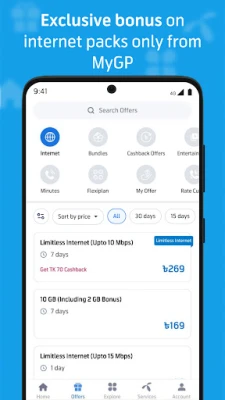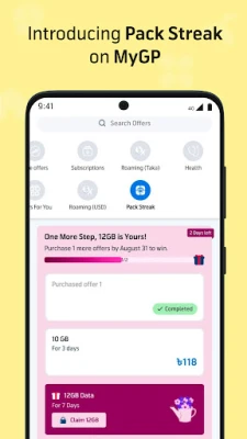 MyGP হল গ্রামীণফোন ব্যবহারকারীদের জন্য একটি চূড়ান্ত সেল্ফ-সার্ভিস অ্যাপ, যা আপনার সমস্ত টেলিযোগাযোগের প্রয়োজন মেটায়। সহজে ইন্টারনেট বা মিনিটের অফার বেছে নিন। অফার অ্যাক্টিভেট করতে জটিল কোড মনে রাখার বা কাস্টমার সার্ভিসের জন্য হটলাইনে ফোন করার প্রয়োজন নেই।